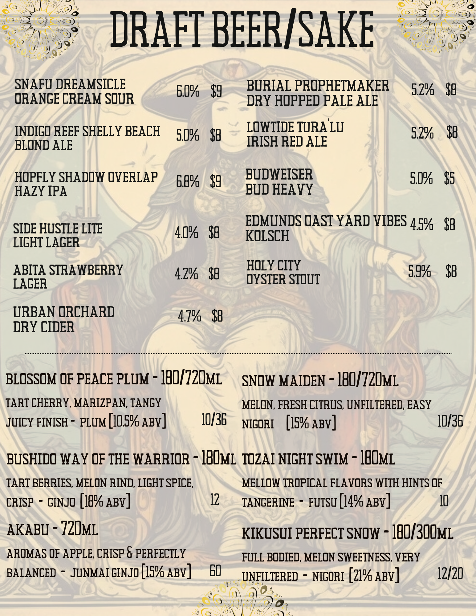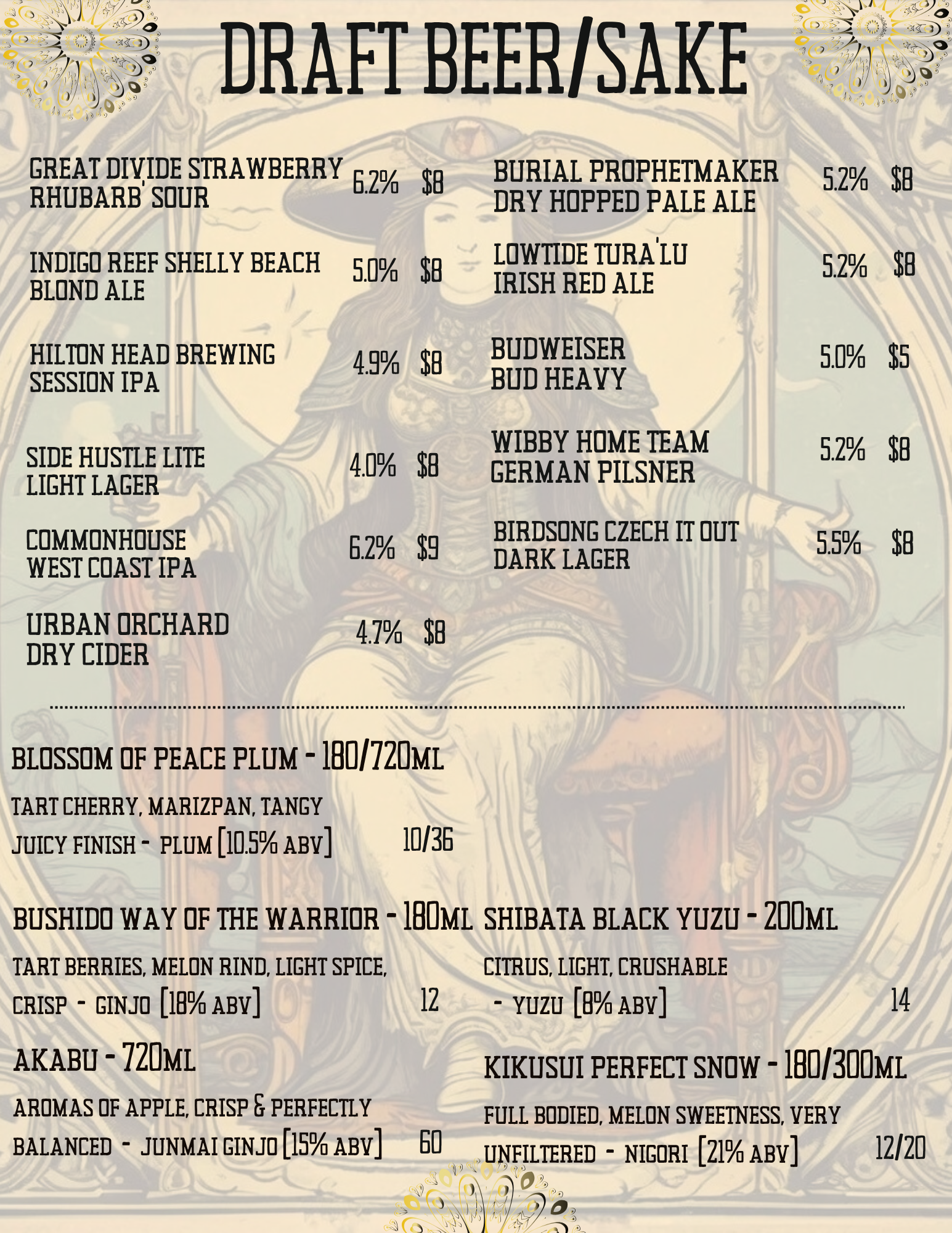 The kitchen is open from 11:30am-10pm Monday thru Sunday, and 5pm-10pm on Tuesdays! Available for take out as well!