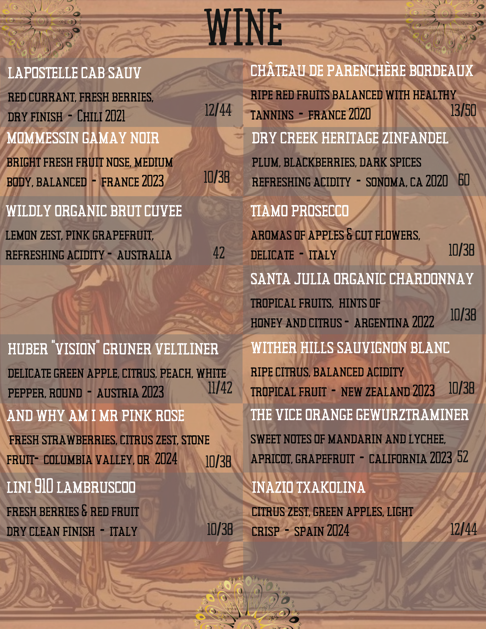 We are proud to carry products from Winebow, a distributor of wine and spirits from all over the world. We work hand in hand with Azura, our friend and colleague. She has helped us to build our wine program through extensive knowledge and a knack for finding products that not only pair with our menu, but also mirror our core values. We strive to carry products from craft, organic, family owned, women owned, and sustainable producers who, like us, have a passion for what they do.