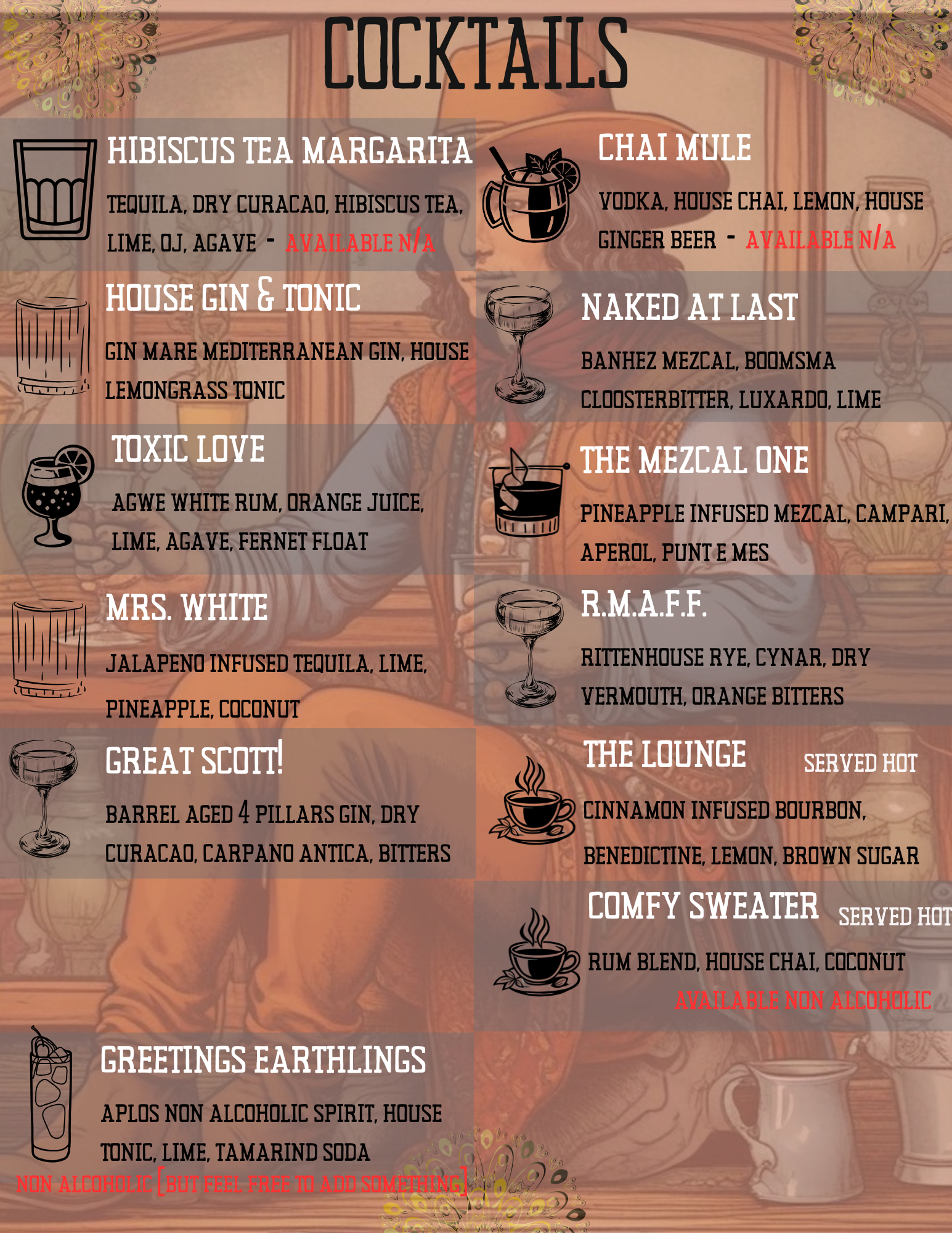The kitchen is open from 11:30am-10pm Monday thru Sunday, and 5pm-10pm on Tuesdays! Available for take out as well!